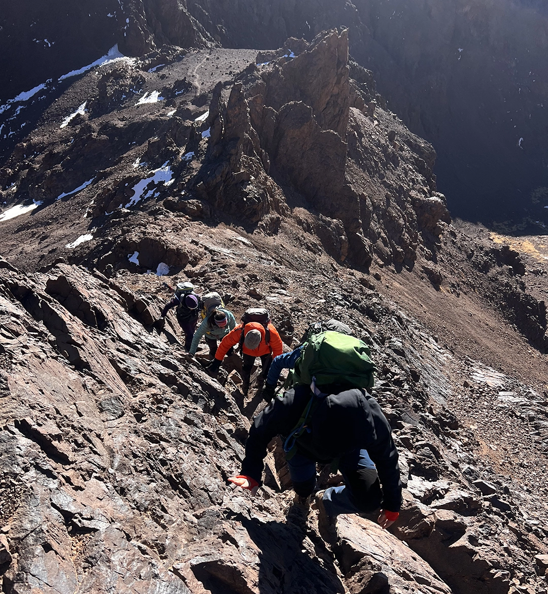 Ruta de montaña en la que descubriremos la cordillera del Atlas y ascenderemos a tres de sus cumbres más importantes por encima de los 4.000 metros de altitud: el Toubkal que con sus 4.167 m es el techo del norte de África y los picos próximos Ras Ouanoukrim y Timesguida. Vivirás una aventura en la que conocerás de cerca la cultura bereber, sus tradiciones, su rica gastronomía y disfrutarás de unas magníficas vistas panorámicas del Parque Nacional del Toubkal.