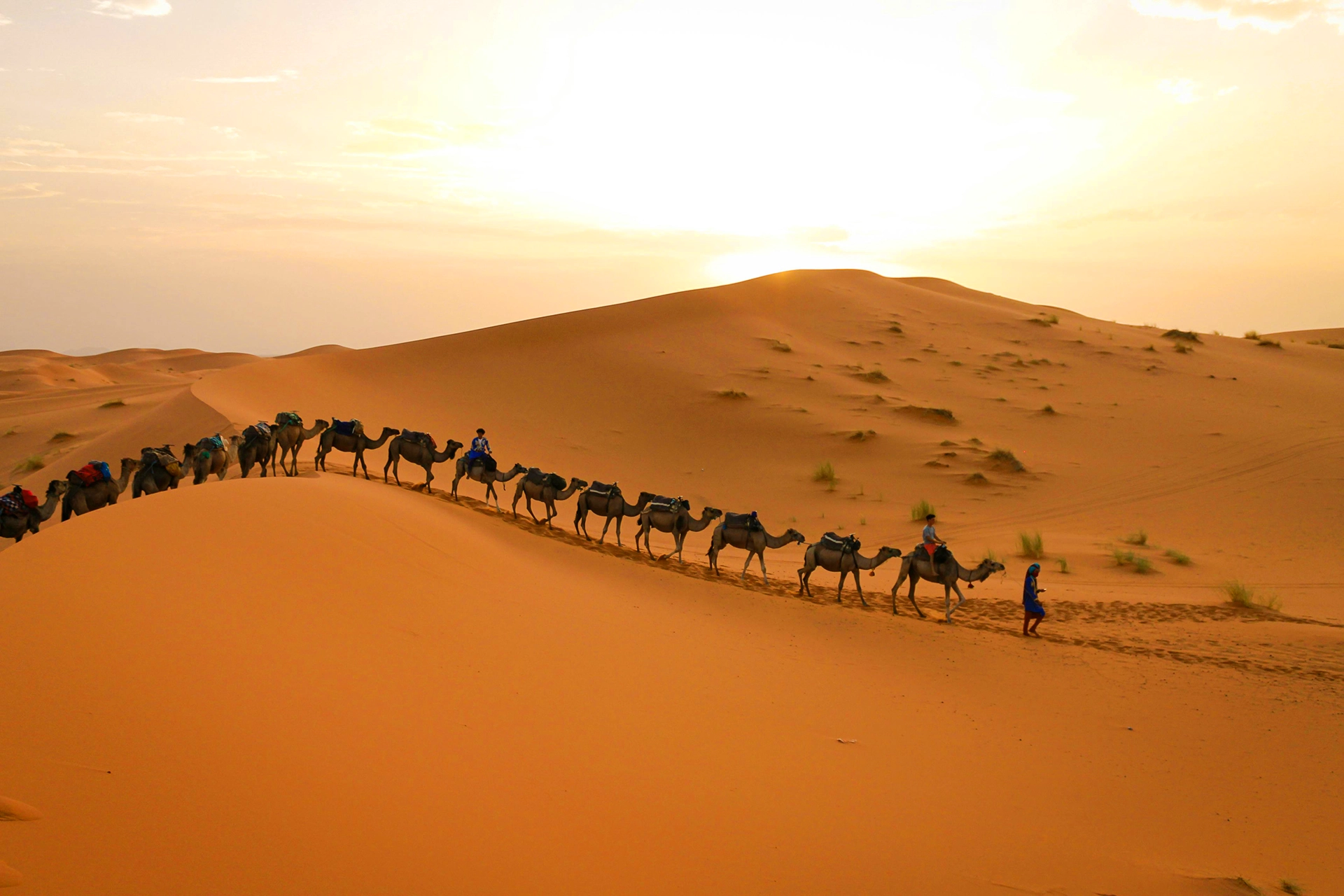 Trekking que culmina en el desierto de Erg Chgaga, el mar de dunas más grande del Sáhara marroquí donde algunas alcanzan los 120 metros de altura. Recorreremos el hermoso Valle de Draa que alberga el mayor palmeral del mundo, descubriremos pintorescos pueblos y sus kasbahs de adobe, pasearemos en camello entre un mar de dunas y podremos disfrutar, al calor de la hoguera, de la infinidad de estrellas que harán compañía hasta el amanecer. ¡Sumérgete en esta aventura inolvidable!