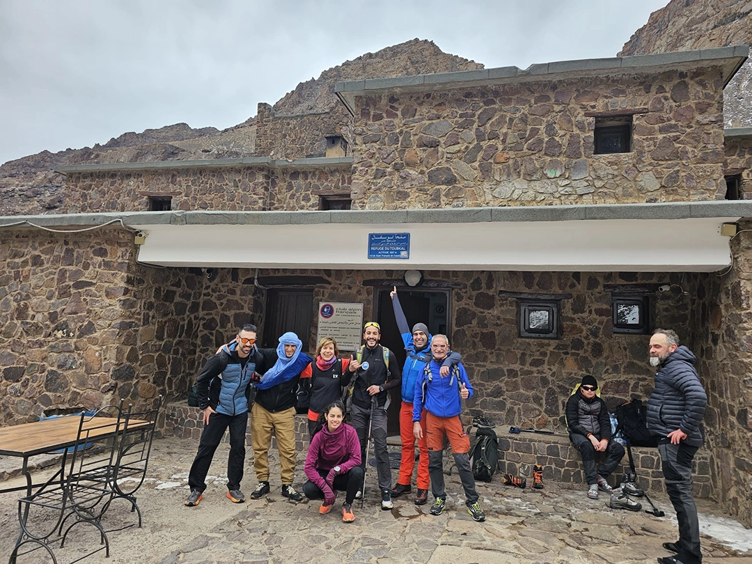 La ruta comienza y sigue a través del Valle de Aremd, atravesaremos una zona boscosa, con arroyos, cascadas y pasaremos por el santuario de Sidi Chamharouch. El camino sigue subiendo por un terreno más rocoso hasta llegar al refugio Neltner (3.207 m), lugar para descansar y conseguir una buena aclimatación. Alojamiento.