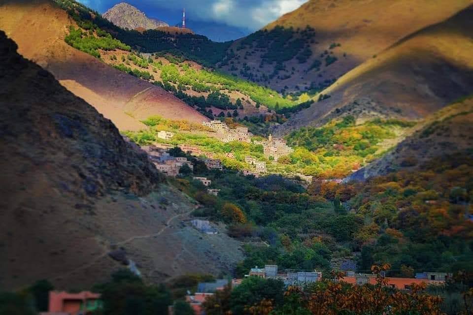 Desayuno y traslado de Marrakech a M’zik. Comida y paseo por los alrededores del Valle de Imlil. Recorreremos todos los pueblos de los alrededores de Imlil, Acheim, Tagardit, Targa, Imoula y regresaremos por Anhene y M’zik. Todo está regado por canales, lleno de nogales y maíz. Alojamiento en Gîte d’étape.